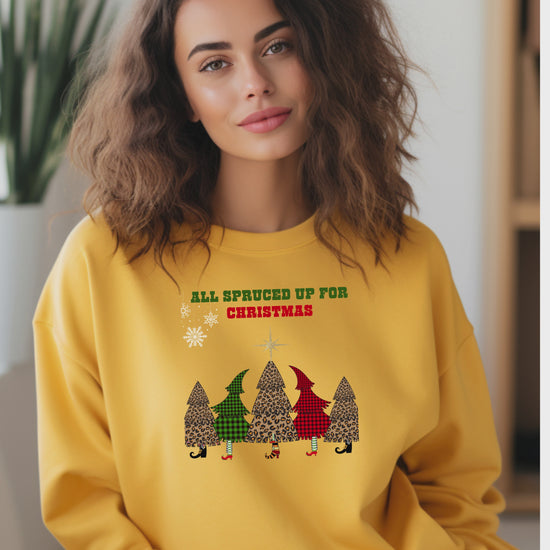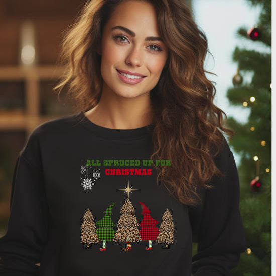 Get into the holiday groove with our All Spruced Up Christmas sweatshirt—a playful twist on festive fashion that’s sure to spark smiles. Featuring five colorful Christmas trees dressed in boots and brimming with personality, this design brings the magic of the season to life.