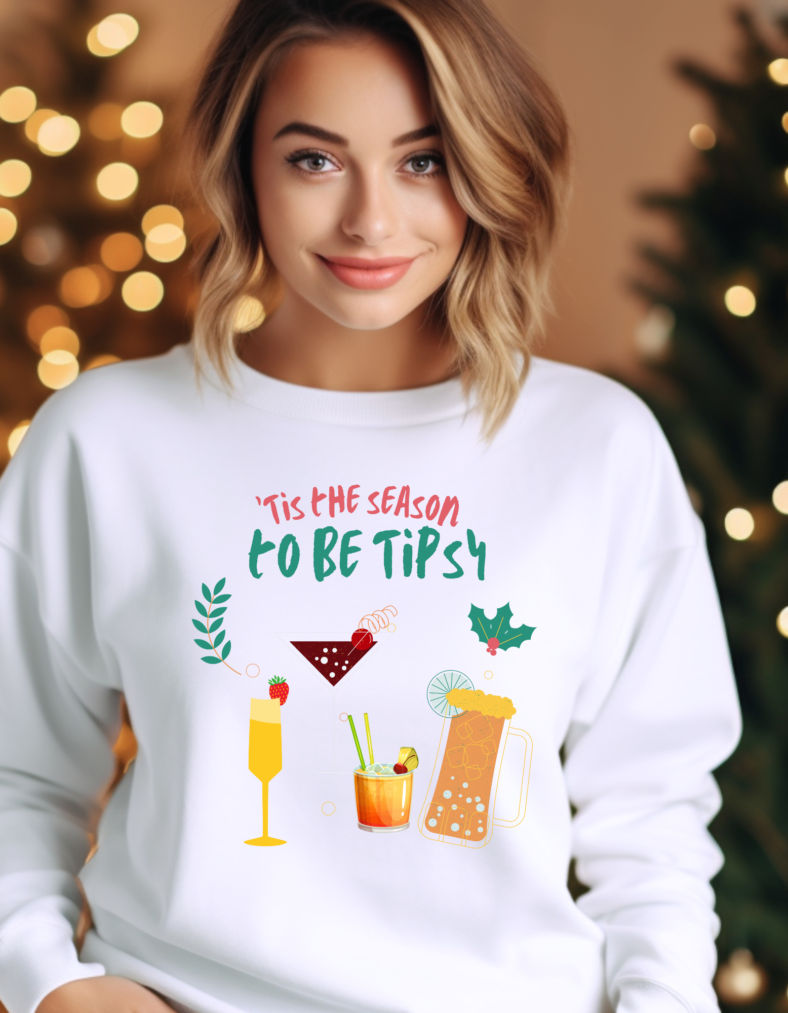 Crewneck Sweatshirt - Tis the Season to be Tipsy - Holiday Cocktail Graphic
